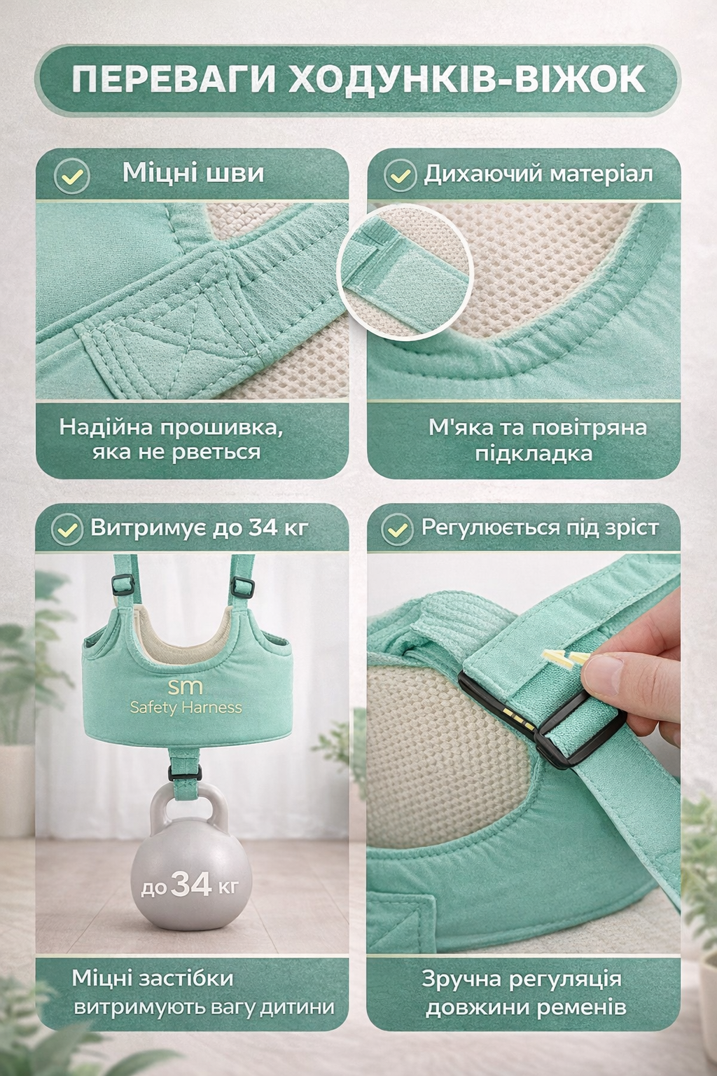 Ходунки-вожжі допомагають пройти цей етап спокійно та безпечно.